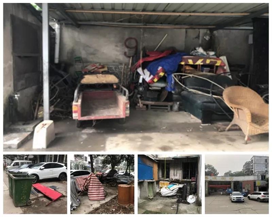 小區(qū)內(nèi)公益廣告缺失、老舊、破損,院內(nèi)衛(wèi)生臟亂差。雜物亂堆亂放,居民亂搭亂建現(xiàn)象嚴(yán)重,存在私自搭建的狗棚。小區(qū)電線捆扎混亂,院內(nèi)衣物隨意晾曬。垃圾桶分類標(biāo)識不清、垃圾桶破損,垃圾清運(yùn)不徹底?!叭嚒蓖7呕靵y,飛線充電現(xiàn)象嚴(yán)重。