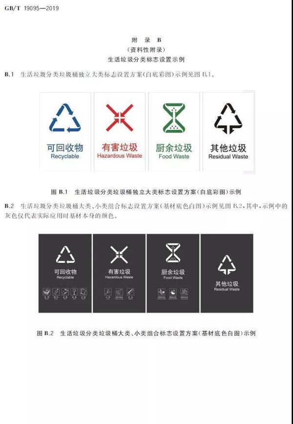 據住房和城鄉(xiāng)建設部城市建設司相關負責人介紹,標準將于12月1日起正式實施。本次修訂主要對生活垃圾分類標志的適用范圍、類別構成、圖形符號進行了調整。相較于2008版標準,標準的適用范圍進一步擴大,生活垃圾類別調整為可回收物、有害垃圾、廚余垃圾及其他垃圾4個大類和紙類、塑料、金屬等11個小類,標志圖形符號共刪除4個、新增4個、沿用7個、修改4個。