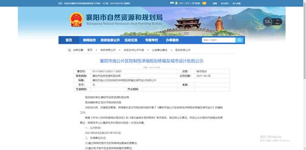 根據(jù)襄陽市自規(guī)局6月8號發(fā)布的《龐公片區(qū)控制性詳細規(guī)劃修編及城市設(shè)計批前公示》表示: