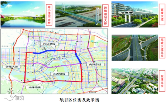 包括內(nèi)環(huán)東線與東西軸線全互通立交、內(nèi)環(huán)東津?yàn)I河路節(jié)點(diǎn)、內(nèi)環(huán)東路襄州航空路節(jié)點(diǎn)和內(nèi)環(huán)東線跨鄧城大道分離式立交4個(gè)節(jié)點(diǎn)工程。