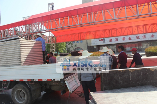 從人民廣場(chǎng)進(jìn)入會(huì)場(chǎng),房展會(huì)的主舞臺(tái)就映入我們的眼簾。紅紅的頂棚已經(jīng)搭好,濃濃的喜慶氛圍撲面而來;工人們正在進(jìn)行鋼架結(jié)構(gòu)的施工和舞臺(tái)臺(tái)面的搭建,整個(gè)進(jìn)度十分順利。