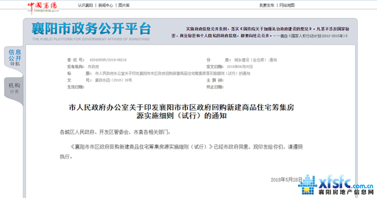 日前,襄陽市政府印發(fā)了《襄陽市市區(qū)政府回購新建商品住宅籌集房源實(shí)施細(xì)則(試行)》,通過政府回購新建商品住宅的方式籌集房源,用來作為人才公寓、公共租賃住房或用于安置棚戶區(qū)改造征遷戶等。