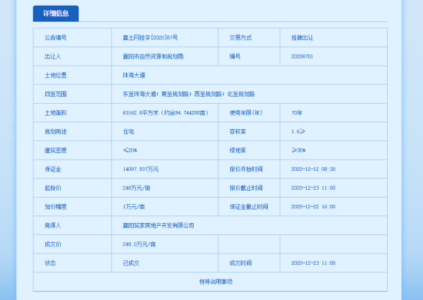 由襄陽筑家房地產(chǎn)開發(fā)有限公司摘得