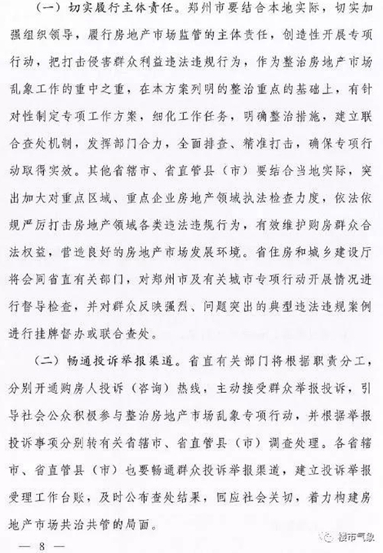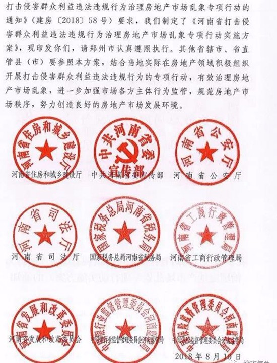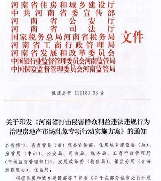今天(8月21日),河南省住建廳、省委宣傳部、省公安廳、省司法局、國家稅務(wù)總局河南省稅務(wù)廳、省工商行政管理局、省發(fā)展和改革委員會、中國銀行業(yè)監(jiān)督管理委員會河南監(jiān)管局、中國保險(xiǎn)監(jiān)督管理委員會河南監(jiān)管局9部門,聯(lián)合發(fā)文《河南省打擊侵害群眾利益違法違規(guī)行為治理房地產(chǎn)亂象專項(xiàng)行動實(shí)施方案》的通知,打擊投機(jī)炒房行為和房地產(chǎn)“黑中介”,治理房地產(chǎn)開發(fā)企業(yè)違法違規(guī)行為和虛假房地產(chǎn)廣告,進(jìn)一步整頓和規(guī)范房地產(chǎn)市場秩序,健全房地產(chǎn)市場監(jiān)管機(jī)制,切實(shí)維護(hù)人民群眾合法權(quán)益,推動河南省房地產(chǎn)市場平穩(wěn)健康發(fā)展。